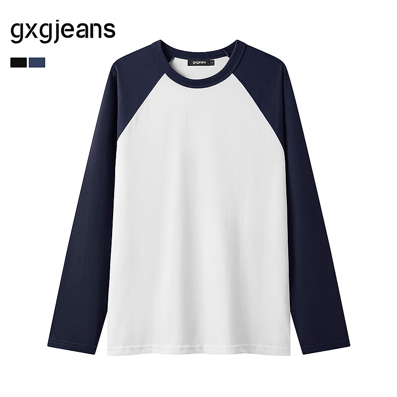 ¥64 gxg.jeans男装* 多色插肩袖基础打底长袖T恤男女同款情侣 25秋新品 藏青白色 XL (180) 99