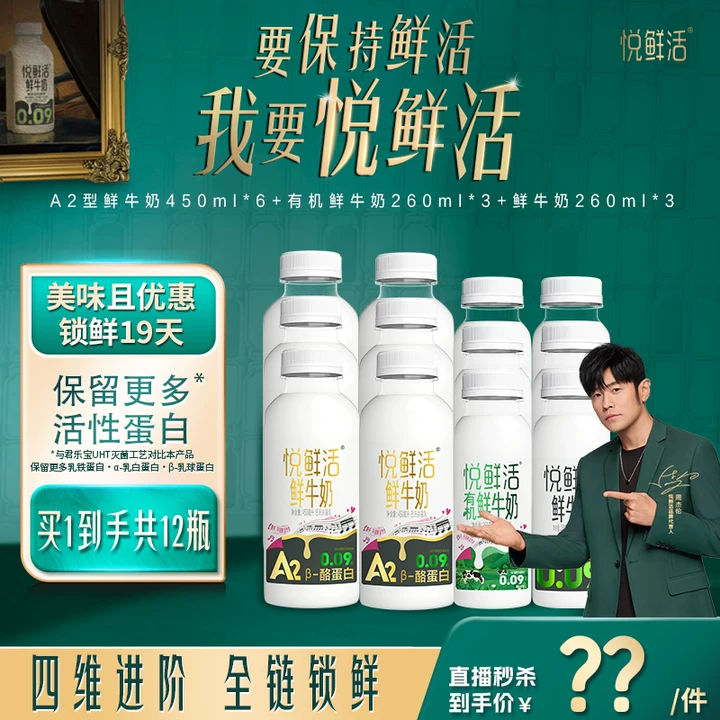 ¥67.3 加赠咖啡液*2!悦鲜活A2型鲜牛奶+有机 67.3