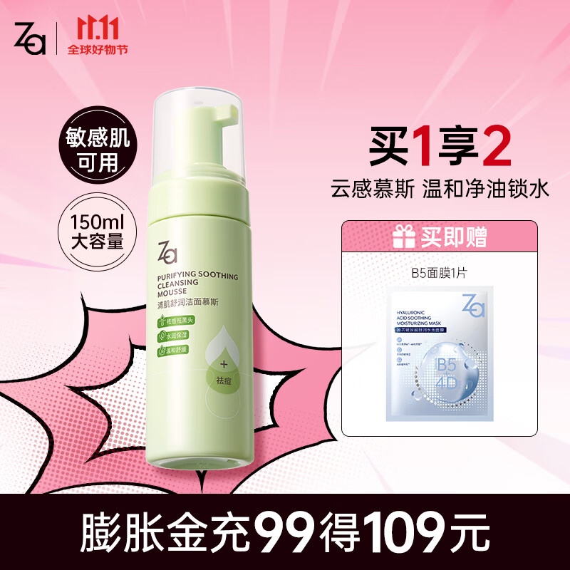 ¥15 姬芮(ZA)泡沫氨基酸洗面奶深层清洁温和不紧绷水润洁面膏洁面乳护肤品 【祛痘控油】泡沫洁面150ml 42