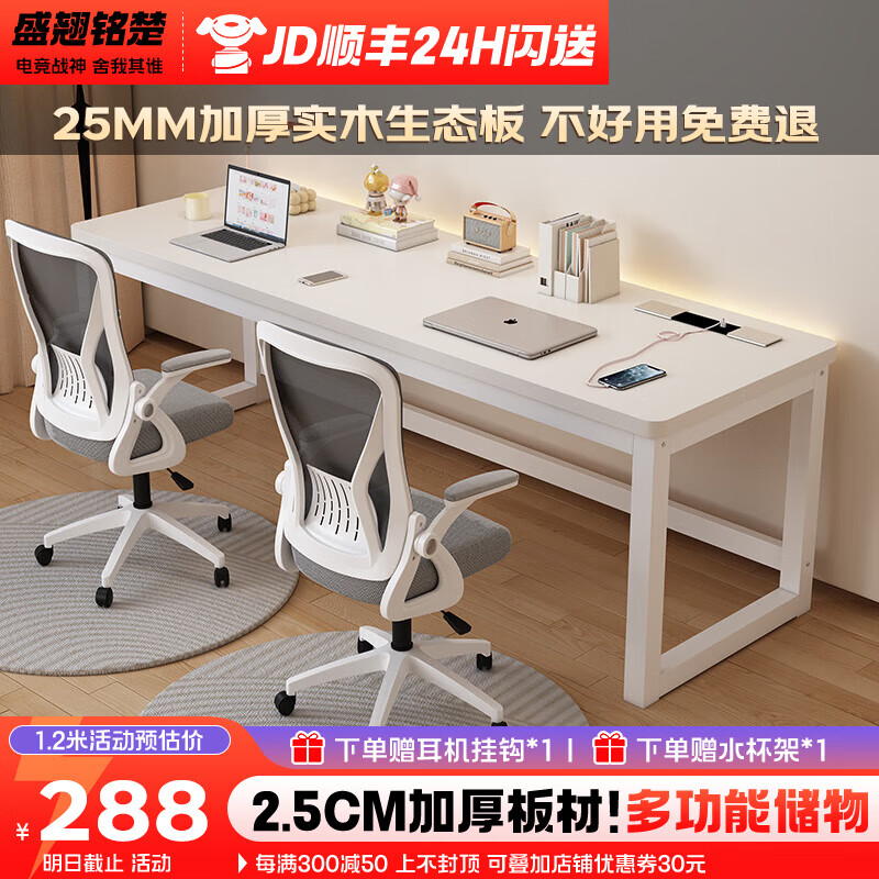 ¥532 盛翘铭楚实木书桌电脑桌卧室家用双人桌子工作台办公桌加厚洞洞板电竞桌子 白桌+白腿+插排 200*60cm 562