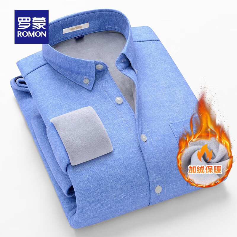 ¥109 罗蒙(ROMON)长袖保暖衬衫男新款加绒加厚格子衬衫中青年男士商务休闲衬衣 蓝色 2XL (175) 119