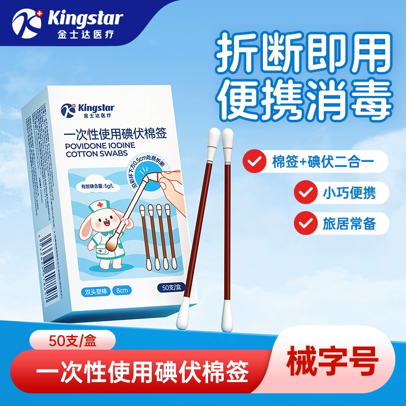 ¥6.9 金士达碘伏棉签一次婴儿棉棒独立包装50支 9.9