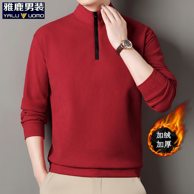 ¥54.9 雅鹿男装加绒加厚拉链长袖t恤男2025年冬季新款保暖休闲套头男士上衣 酒红 加绒 4XL (建议180-195斤) 119.9