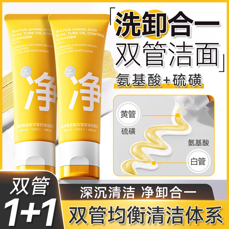 ¥12.9 【优选】硫磺洗面奶深层清洁保湿男女士专用洁面乳 硫磺洗面奶 100ml(1支装) 42.9