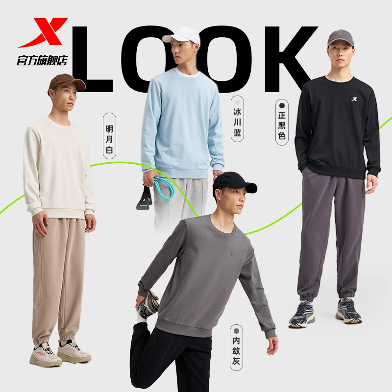 ¥71 37!特步男士圆领卫衣秋季新款 99