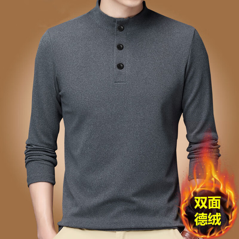 ¥39.9 楠飞华裳半高领加绒加厚打底衫男士保暖内衣上衣秋2025冬季中青年休闲 深灰 4XL 建议175-190斤可穿 119.9
