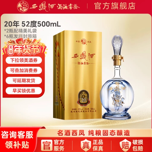 123.36元!西凤酒 20年52度500ml纯粮食白酒凤香型礼盒