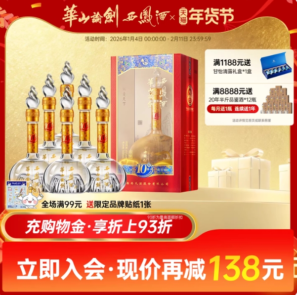 559元!西凤酒 10年45度凤香型粮食白酒送礼整箱装 500ml*6瓶
