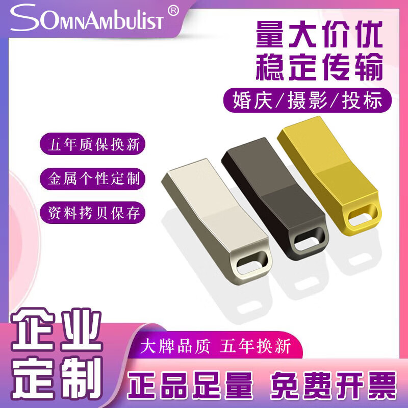 ¥78.9 SomnAmbulist【精选】金属 USB2.0 U盘U8M金属高速迷你防水便携式创意车载学习办公投标小移动优盘 银色 128GB 108.9