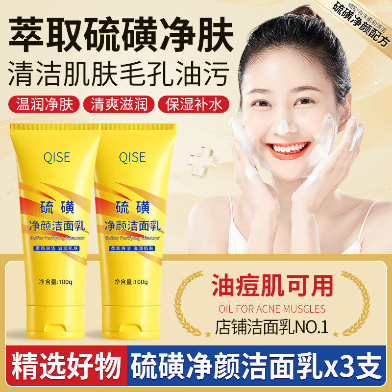¥10.2 琪瑟硫磺洗面奶净颜洁面乳深层洁净滋润保湿清洁毛孔清爽温和不刺激 硫磺洁面乳*3支, 30.2