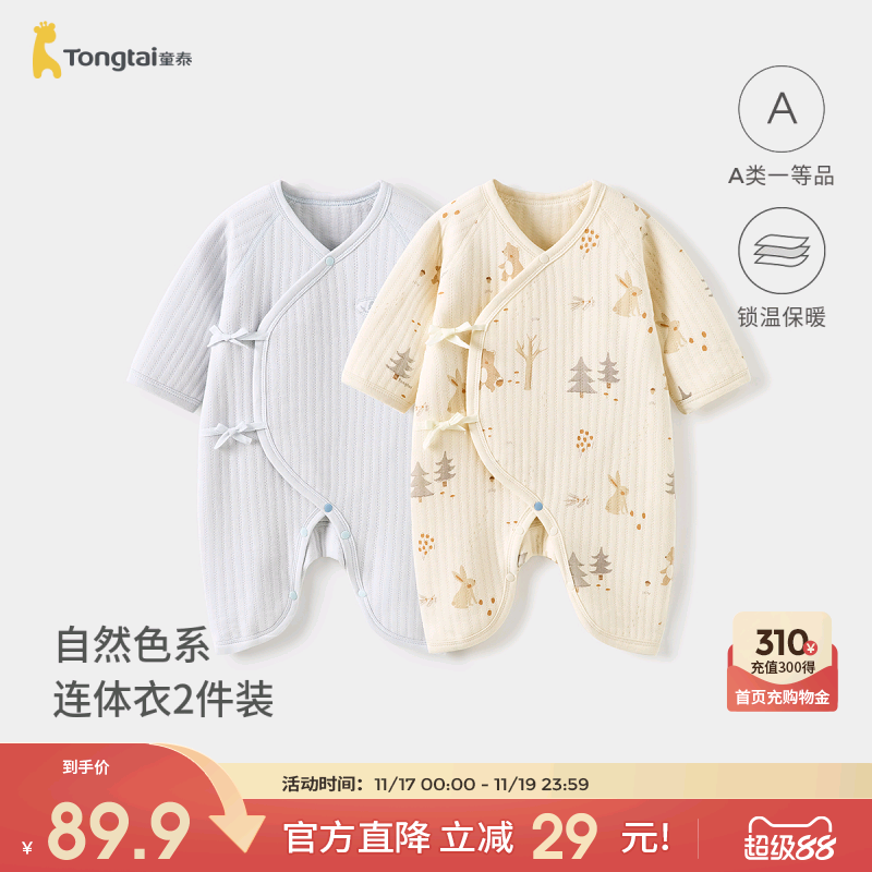 ¥69.9 童泰婴儿连体衣秋冬季纯棉保暖新生儿衣服 89.9