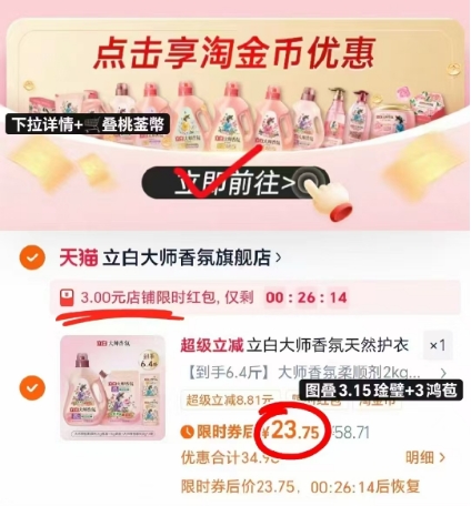 在售价58.7元,领20元券,商品页价格下拉详情页-淘金币点进去拍,实付26.65元包邮(部分号弹随机3元红包,价更低);