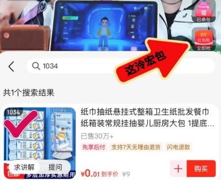 ❸右上角领红包雨,拍1034?