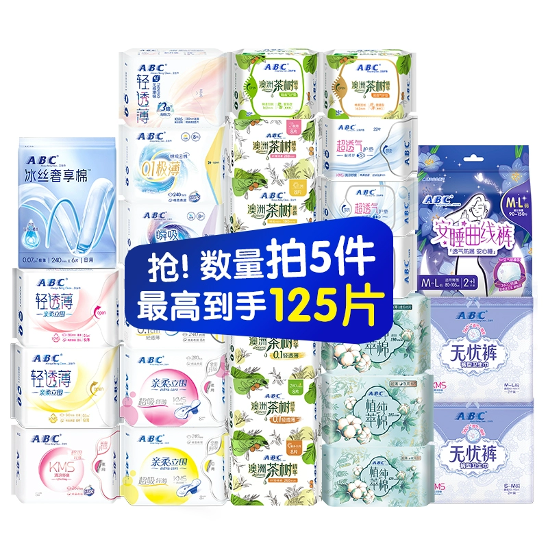 ¥18.3 漏18.3!!ABC卫生巾任选5件 84.3