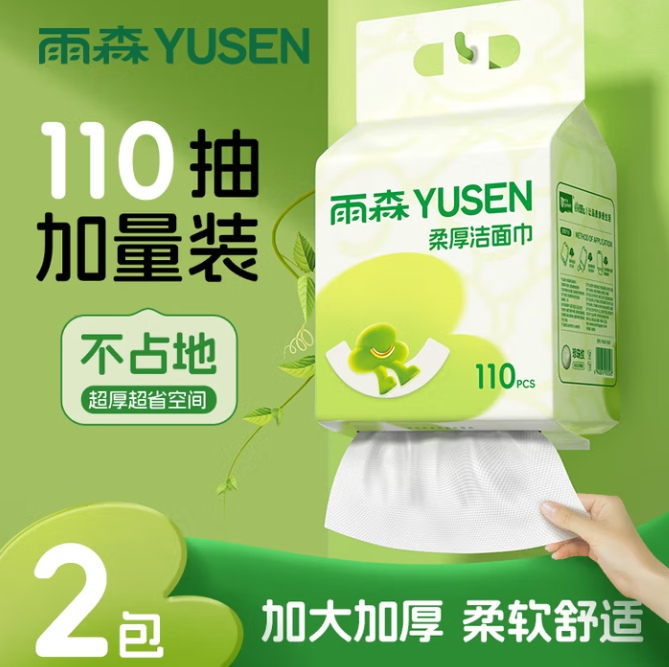 11.9元包邮!雨森悬挂洗脸巾110抽*2包