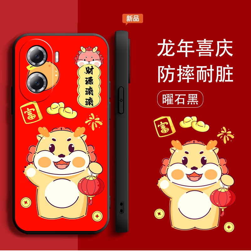 ¥10.9 美希意华为畅享60Pro万柿如意华为畅享60Pro万柿如意个性创意全包边镜头保护 曜石黑-财运亨通-单壳 华为 畅享60 Pro 40.9