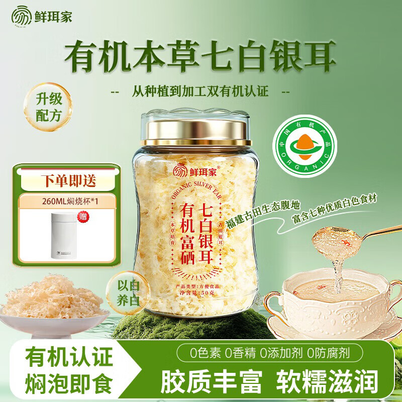 鲜珥家有机本草七白银耳+焖烧杯 到手29.9元