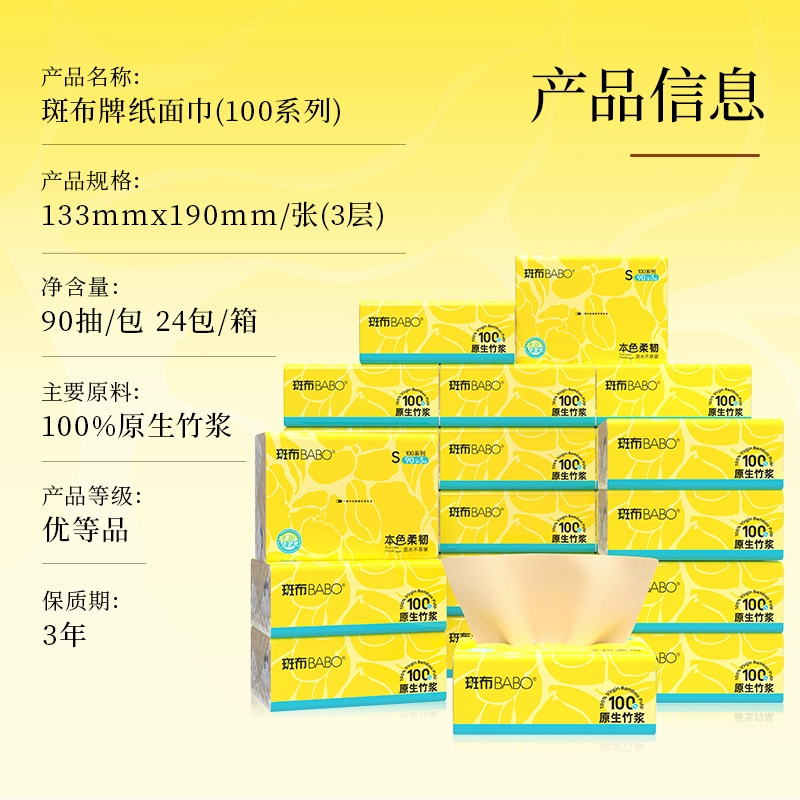 ¥22.9 湿水不易破不掉屑!斑布原木抽纸90抽*24包 37.9