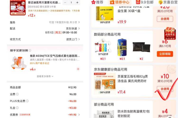 拿券中心领10-10元券,雾化面罩5件套低至0元