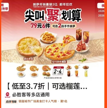 【美团】73.5元6件!必胜客 披萨小食套餐