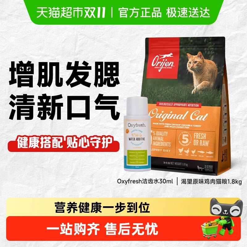 ¥260.23 渴望原味鸡肉猫粮1.8kg+氧亲新洁齿水30ml 270.23