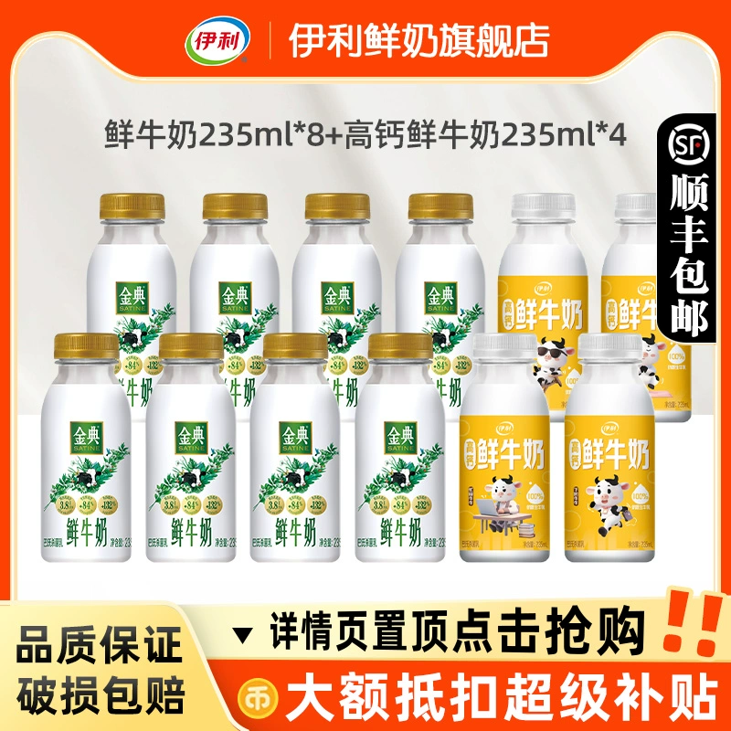 ¥40.9 伊利金典鲜奶235mlX8瓶+伊利高钙235mlX4瓶 40.9