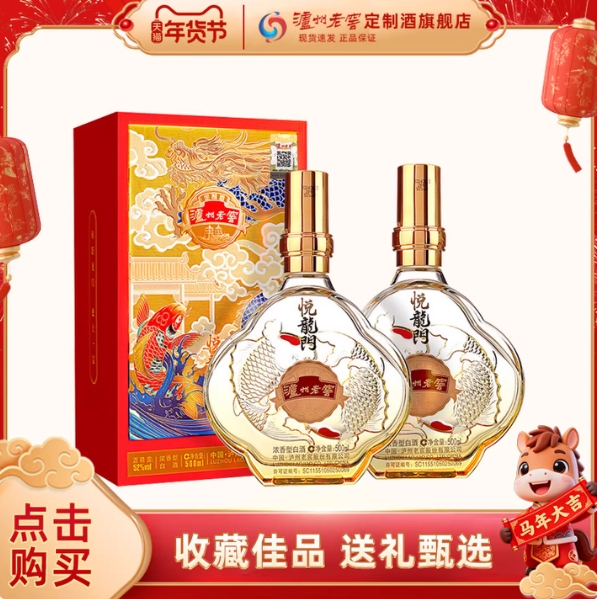 150元!泸州老窖浓香型白酒52度 500ml*2瓶