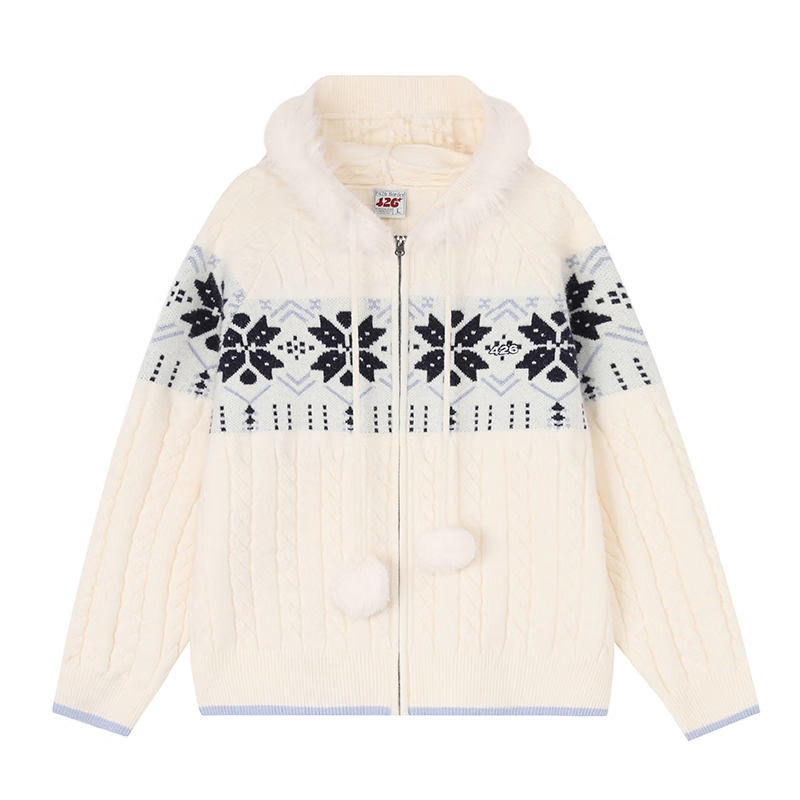 ¥294 F426官方店国潮牌秋季新款情侣高级慵懒连帽毛领费尔岛毛衣 米白色 S 299