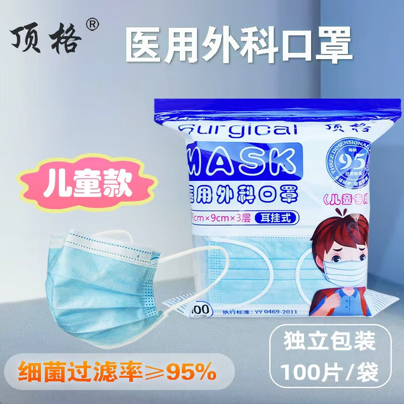 ¥9.9 顶格医用外科儿童口罩一次性独立包装医用口罩三层过滤亲肤透气不勒耳 蓝色 儿童款100只【3.5MM宽耳带】 15.9