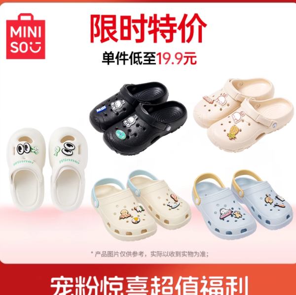 ¥45.35 【漏!14/双】MINISO沙滩风洞洞鞋 95.35