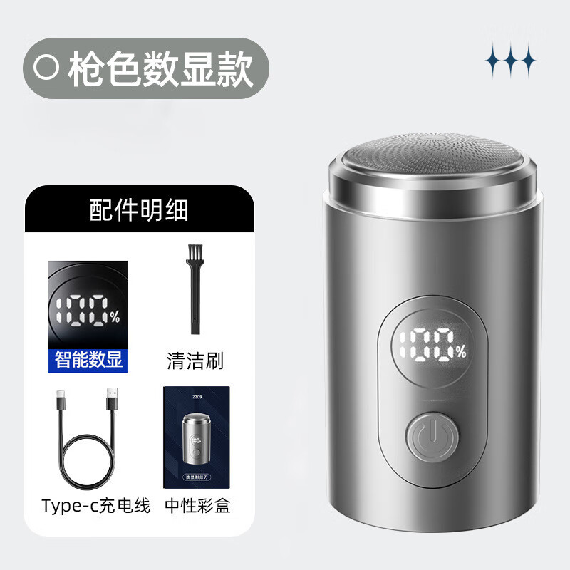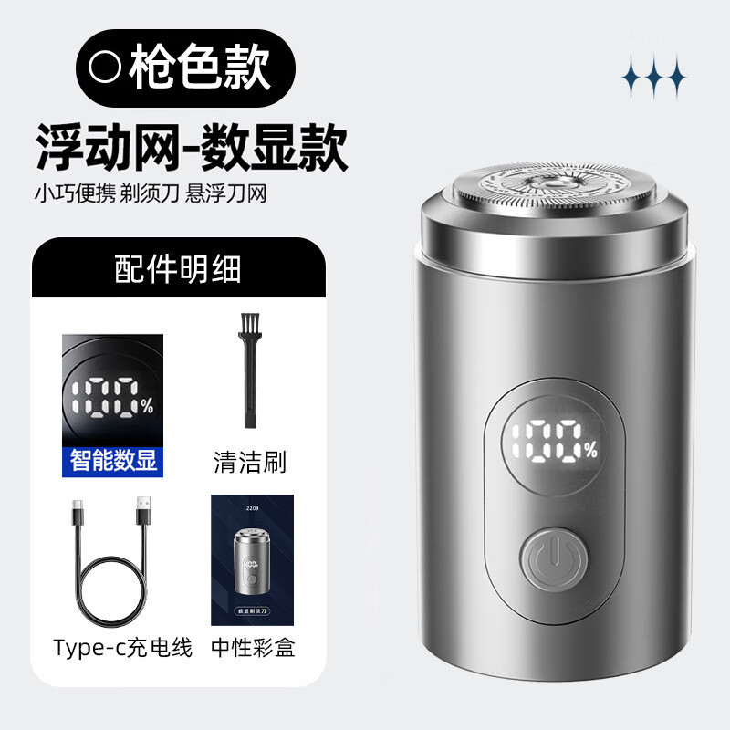 ¥45.9 【优选】迷你小钢炮电动剃须刀铝合金胡须刀水洗男士刮胡刀 2209枪色-悬浮刀头 75.9