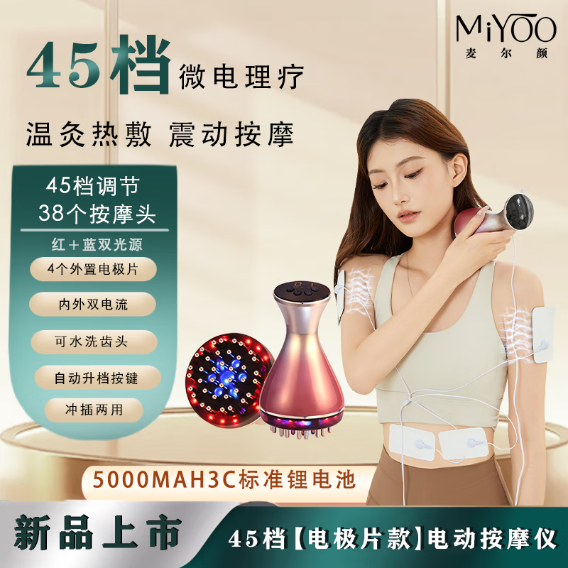 ¥308 麦尔颜【全新升级】45档电动经络刷电极片款微电理疗温灸热敷震动按摩按摩器 45档按摩仪 +加强版精油1瓶 +加强版紧致霜1瓶 318