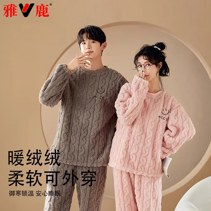 ¥99.9 雅鹿男士睡衣秋冬季加绒加厚情侣款可外穿保暖防寒男女家居服套装 灰色(男款) 2XL 109.9