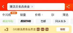 1.手淘-猫超搜:美食品类金 看是否有3元品类金