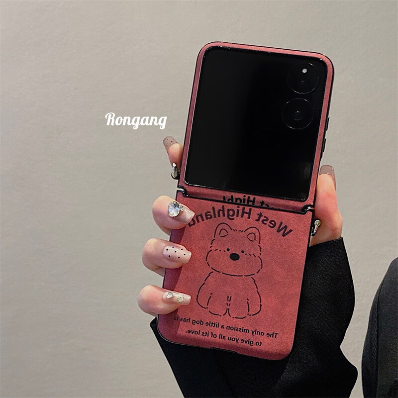 ¥38 Hnew可爱皮纹西高地狗狗适用小米mixflip手机壳新款华为pocket2/s小折叠屏全包zflip6/5外壳n3/2Flip女 【玫红西高地】铰链保护 轻奢皮纹 荣耀magic V flip2 48