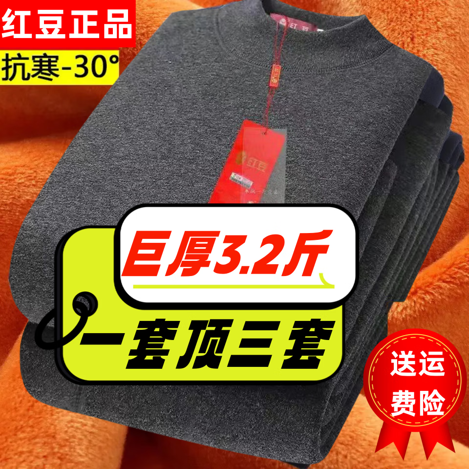 ¥157 红豆巨厚保暖内衣套装男士加绒加厚中老年超厚防寒特厚送爸爸圆领中领 中领-深灰【升级巨厚保暖套装】 2XL /175 【130-150斤】 178