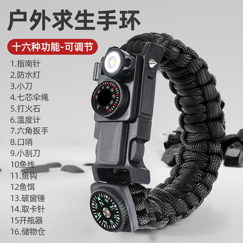 ¥144 GERTHRON户外生存手环求生手链多功能防身装备伞绳13合1编织野外生存工具 漫暮黑【十六合一 进阶款】可调节腕带 【随手可用 户外应急】 149