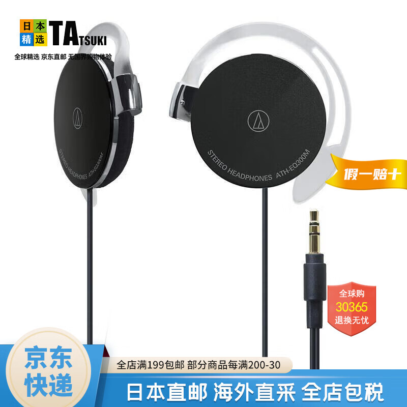 ¥65 铁三角(Audio-technica)【日本直邮 日本发货】挂耳式耳机 挂耳式运动耳机 3.5mm插孔有线耳机 ATH-EQ300M【黑色】 68