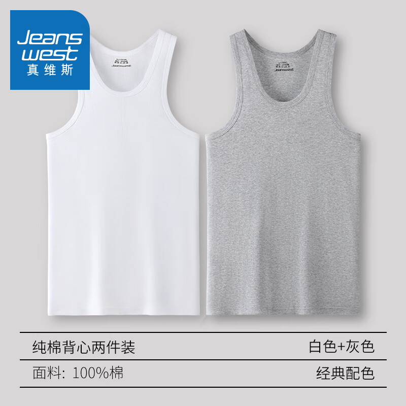 ¥24.9 真维斯男士背心男无痕运动吸汗100%纯棉白色内穿夏季打底汗衫 白色+灰色 2XL 140-160斤 29.9