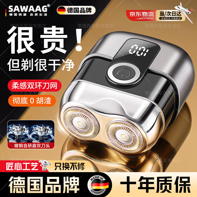¥289 飒望德国剃须刀电动男士2025新款刮胡刀差旅便携轻便单头迷你刮胡子充电式全身水洗男生七夕礼物送男友 枪灰色尊享款+2个刀头 299