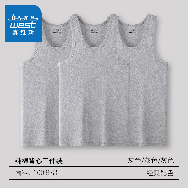¥34.9 真维斯男士背心男无痕运动吸汗100%纯棉白色内穿夏季打底汗衫 灰色+灰色+灰色 XL 120-140斤 39.9