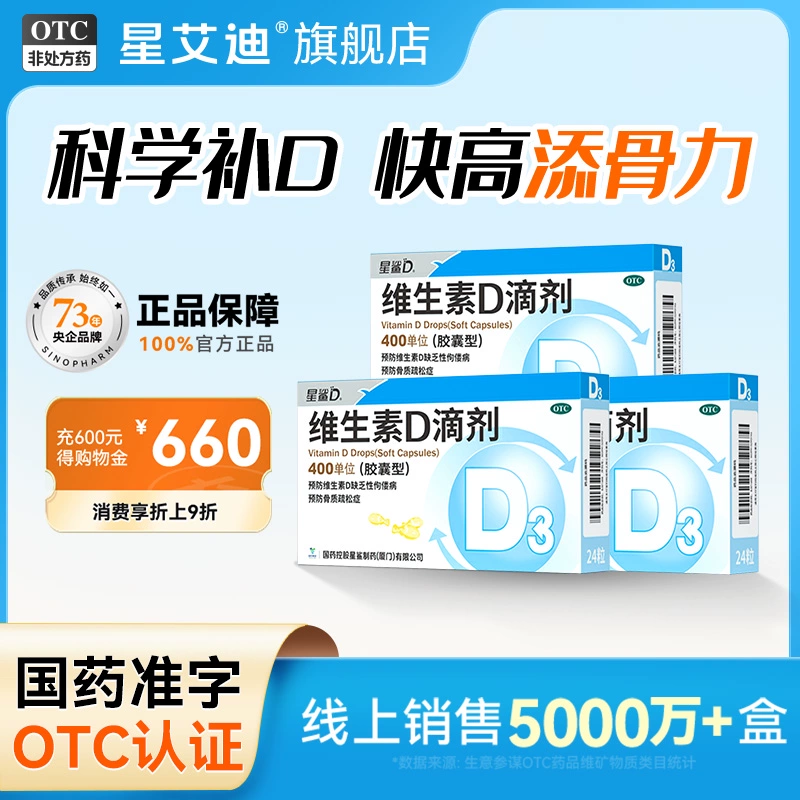 ¥72.4 星鲨补钙维生素D3滴剂共144粒 134.4