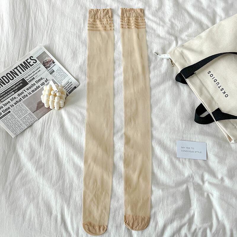 ¥9.9 其它春夏季肉色大腿防勾丝过膝袜子长筒袜防滑四杠显瘦包芯丝丝袜 透明长筒丝袜-肤色-1双 无规格 39.9