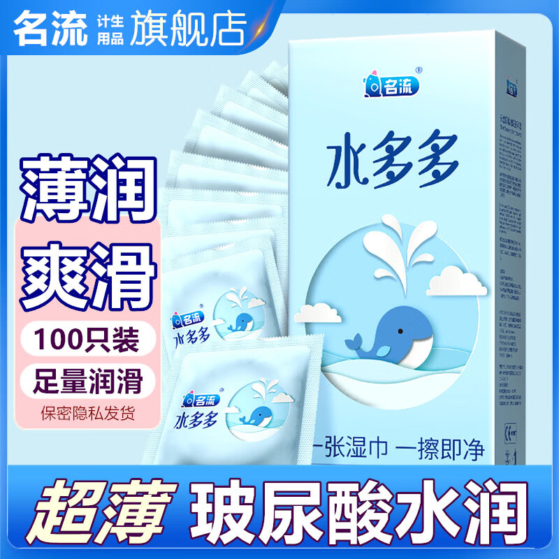 ¥45 名流避孕套水多多玻尿酸男女用超薄002安全套100只装套套裸入套子bytt 名流水多多超薄光面100只装 50