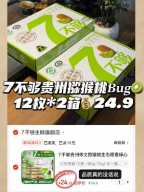 24.9元包邮!7不够贵州猕猴桃12枚*2箱