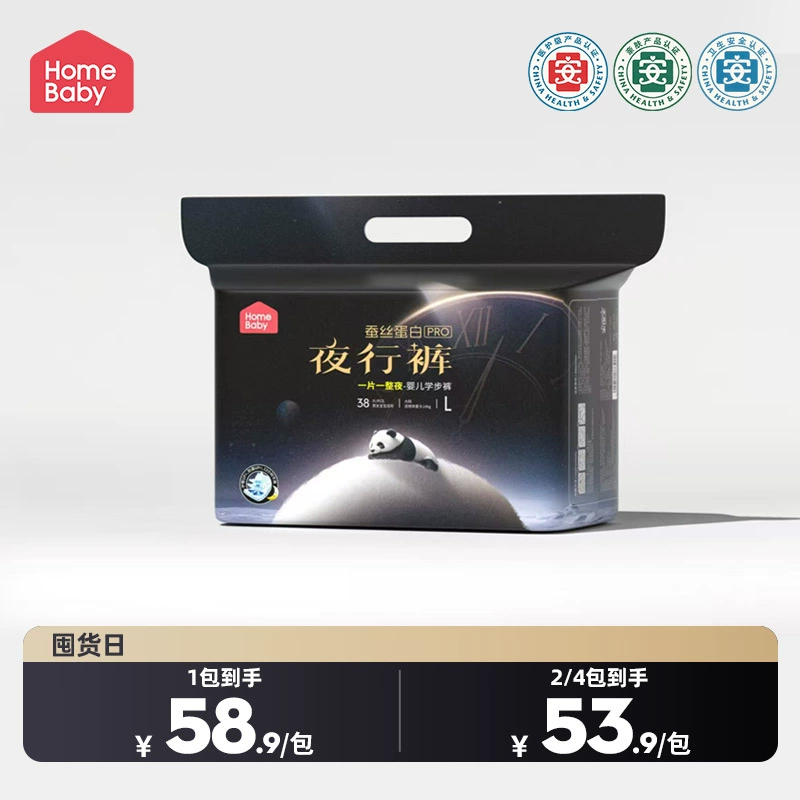 ¥53.9 家得宝蚕丝蛋白夜行裤透气防漏纸尿裤 69.9