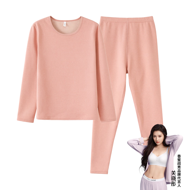 ¥34 香蜜闺秀GOSO【保暖内衣】纯色加厚秋冬季长袖秋衣秋裤保暖内衣套装 W3405004虾粉(加绒)(女款) L 119