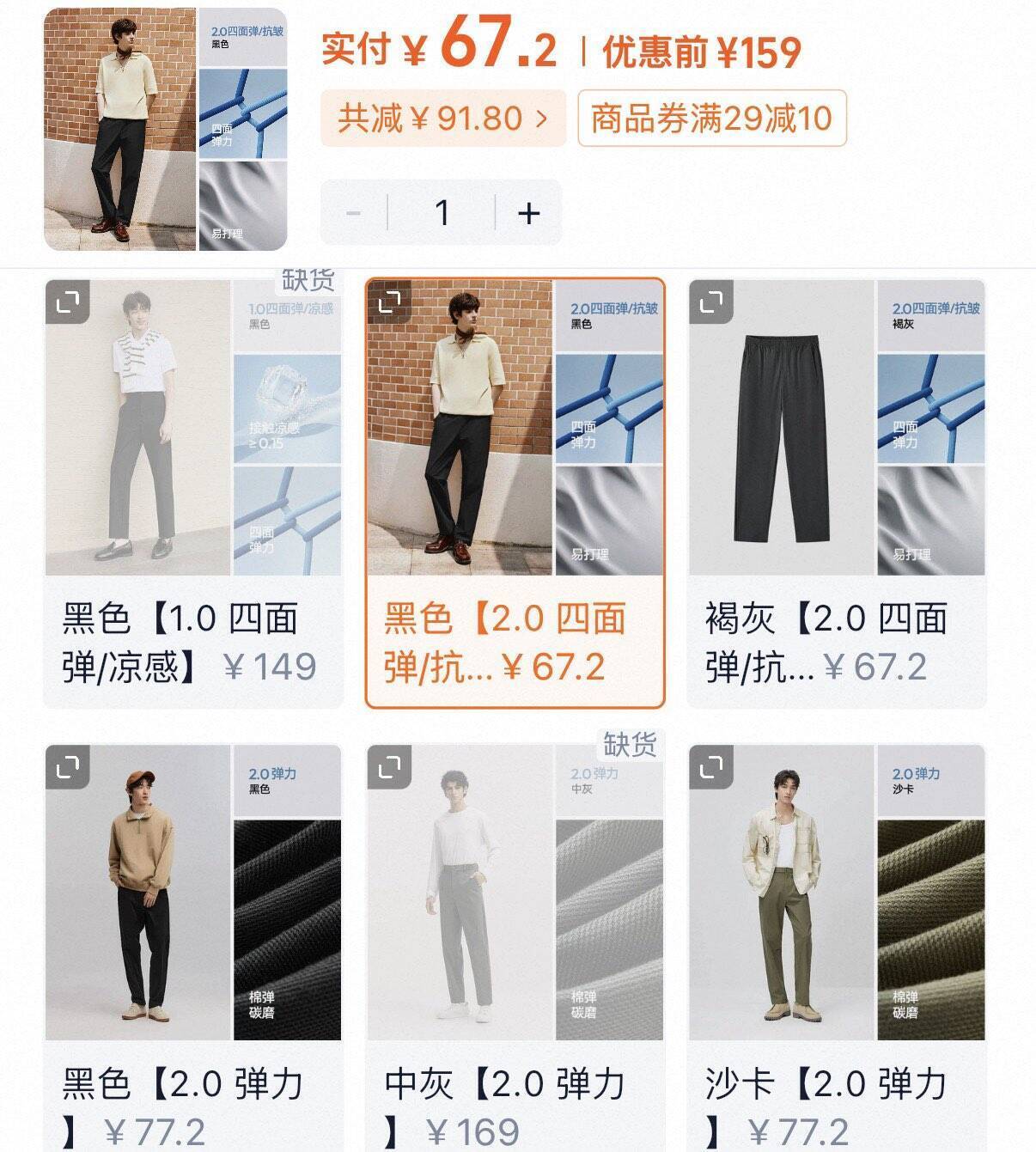 匹克速干运动套装上衣+短裤两件套仅需43元