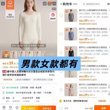 39.9元包邮!都市丽人无痕保暖内″衣套装