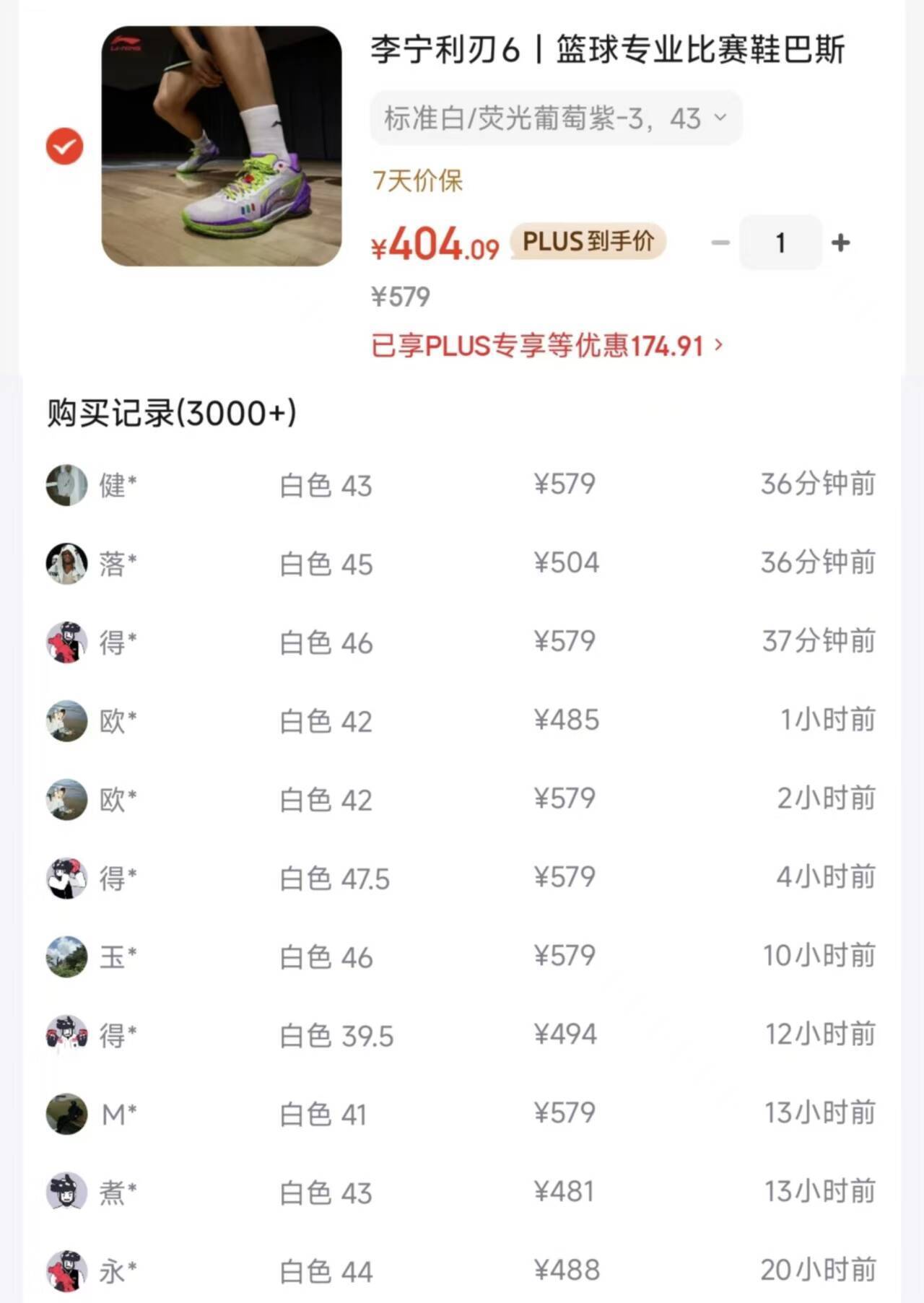 李宁利刃6 巴斯光年篮球鞋 PLUS单拍到手404